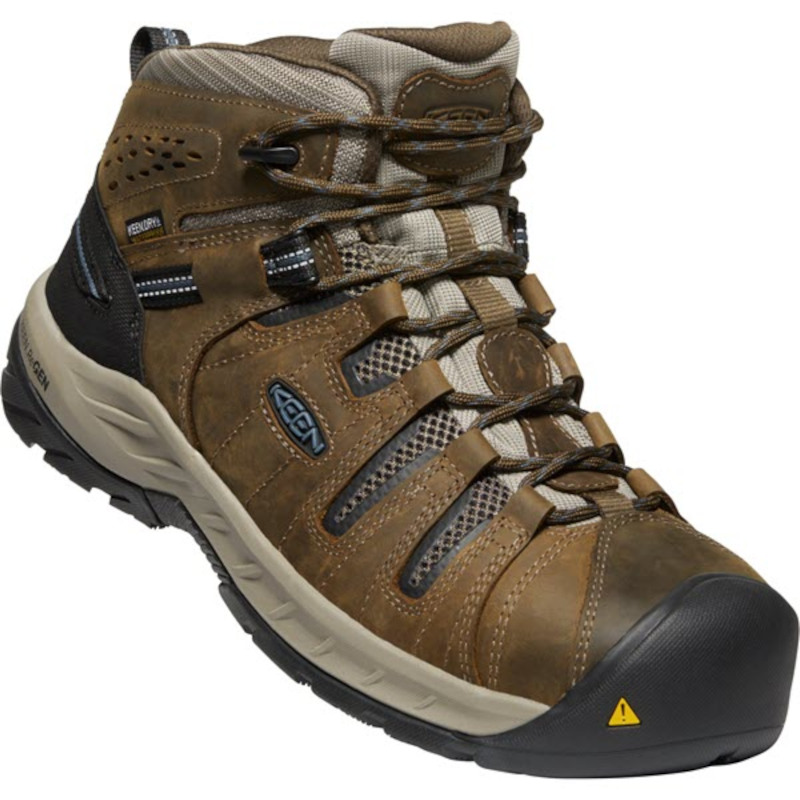 Sometimes the biggest price you pay for wearing lower quality work footwear is a stubbed tub. Wet feet. Or worse. We don’t want to know about all of the possible injuries; we just want our customers to have the highest-quality gear possible. With these ~Keen Utility Men’s 1023237 Cascade Brown Orion Blue Flint II Mid Steel Toe Waterproof Work Boots on your feet, you’ll notice the difference right away.